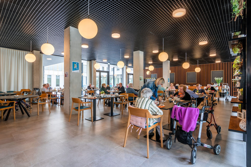 Op de gelijkvloerse verdieping van het aanpalende woonzorgcentrum kan je voor een lekkere maaltijd terecht in onze stijlvol ingerichte bistro. Elke dag staan er smaakvolle gerechten op het menu.